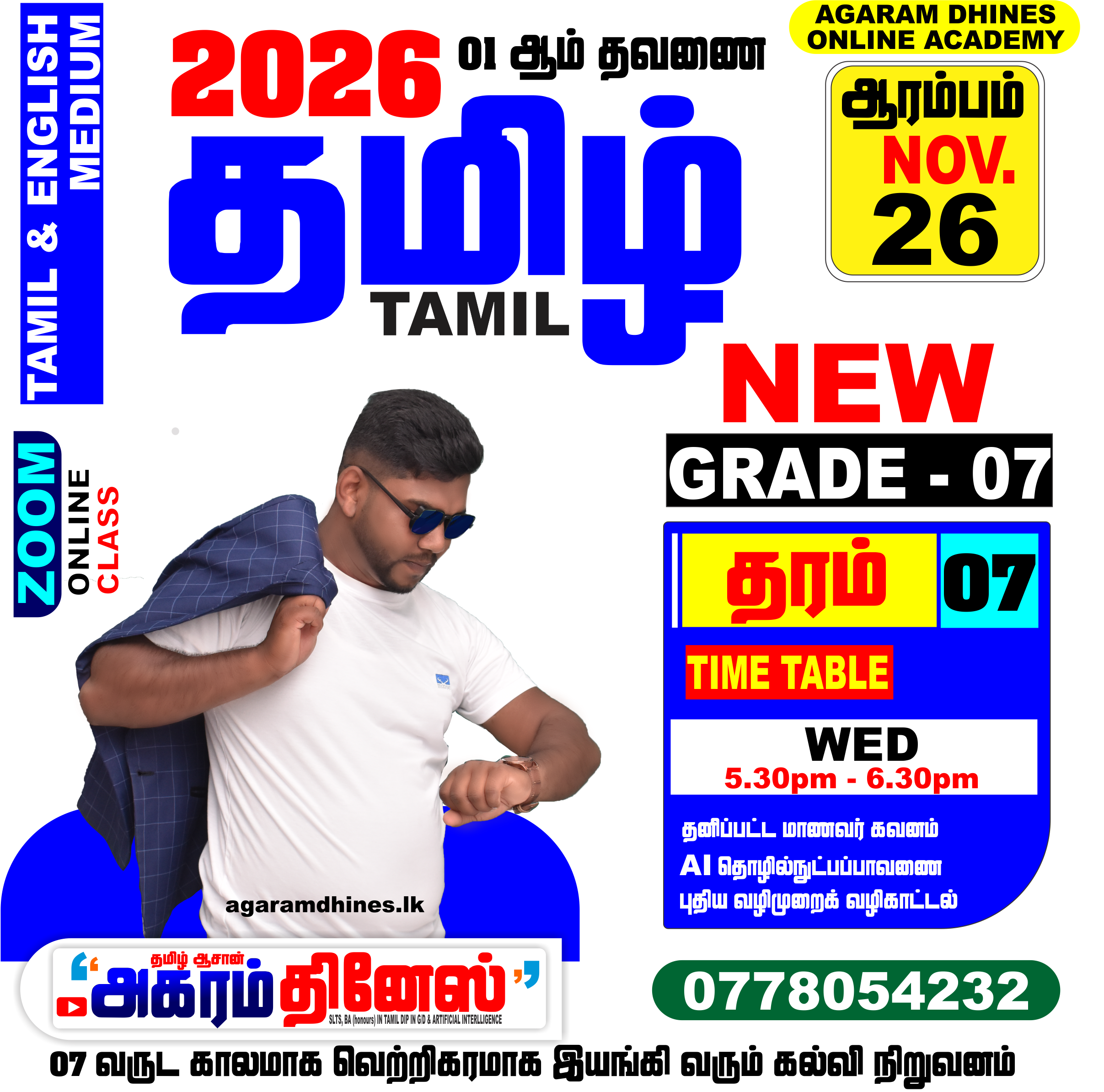 - I run a popular educational YouTube channel named “Agaram Dhines”, where I create and share free Tamil lessons.